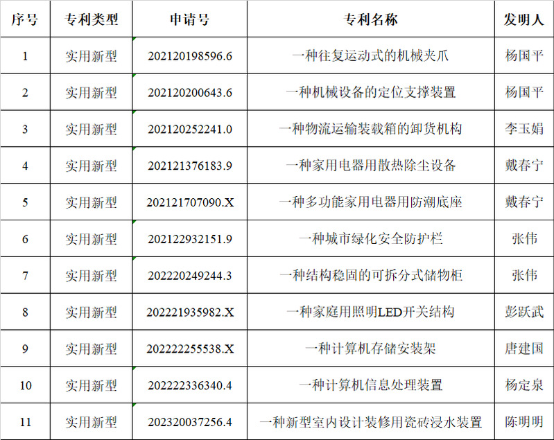 根据相关国家法律法规和我校科技成果管理办法,我校拟对11项实新专利所有权进行转让,转让方式为协议定价,具体信息如下: