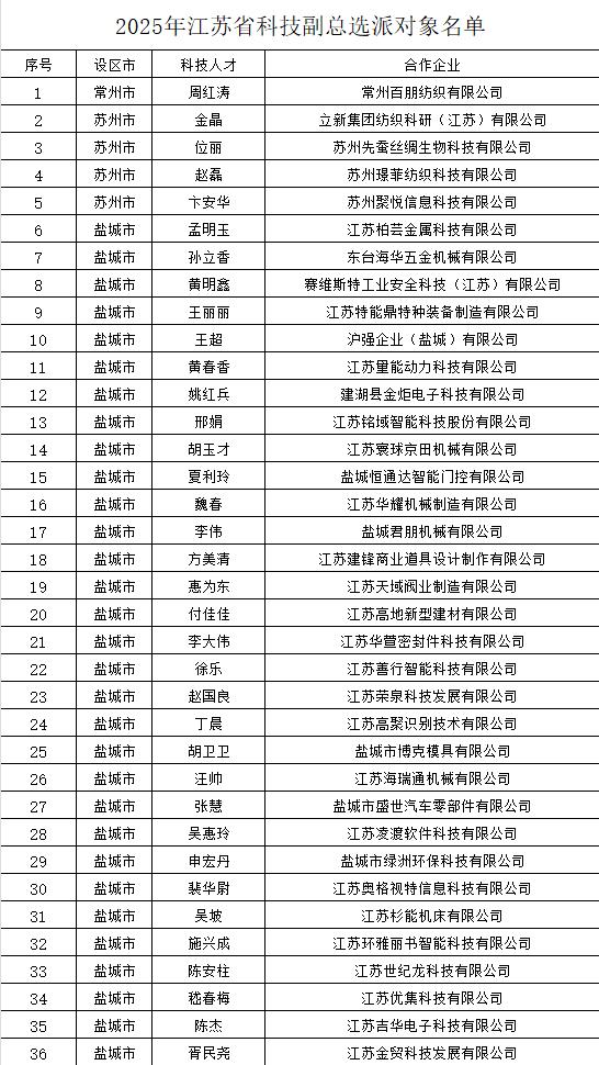 近日,中共江苏省委人才办、江苏省科学技术厅与江苏省教育厅联合印发《关于确定2025年江苏省科技副总选派名单的通知》(苏科区成发〔2025〕172号),我校共有36位教师成功入选。