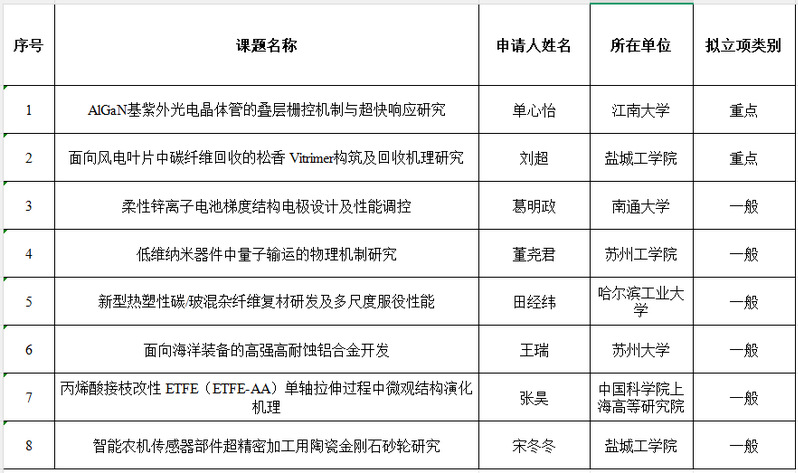 根据《关于2025年度盐城工业职业技术学院省级科研平台开放课题申请的通知》要求,我校省级科研平台面向国内外高校及科研单位设立了开放课题。经形式审查,共有27项申请项目符合条件进入评审。通过专家评审,现拟对以下8项课题予以立项公示。公示期为7日(自公示之日起计算)。如有异议,请在公示期内与我校科技处联系。