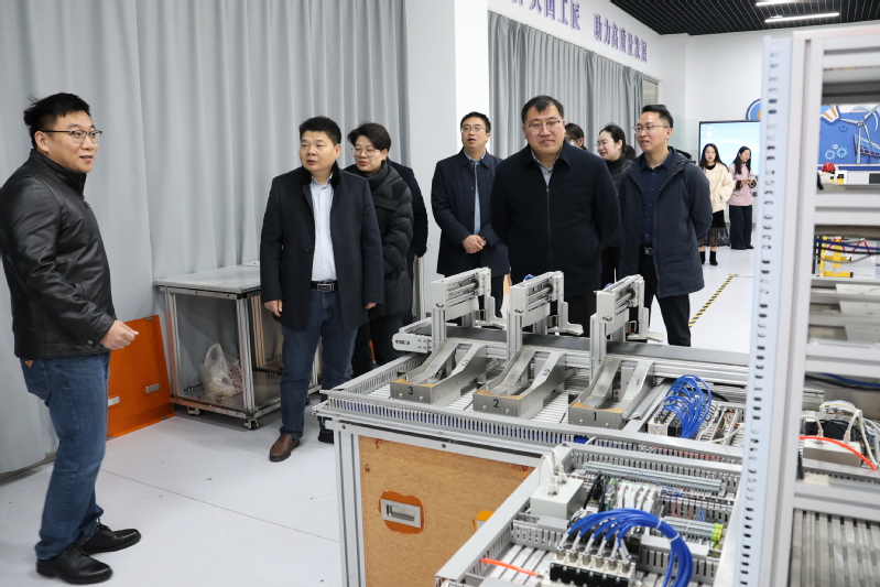 调研组先后走访了工业中心实训基地的智能电梯、智能控制、智能网联实训室,以及纺织服装学院服装展览馆、药品与健康学院药物制剂实训室和非遗学院,细致观摩实训室内师生创新作品,深入挖掘适配科普宣传的优质项目。